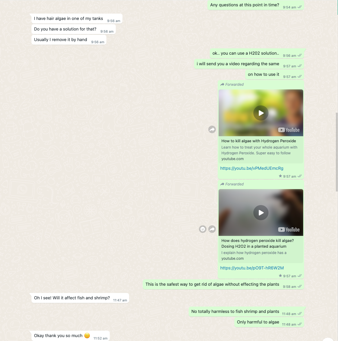 We suggest solutions that are budget friendly and easy to apply, like the 3% diluted H202 solution commonly available in medical stores. We provide video references if possible to make it easier for our customers to understand the process.